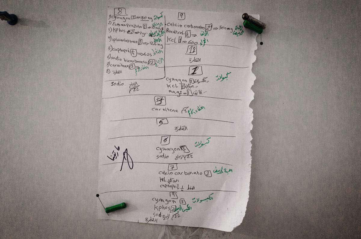 Heba deve ancora compiere cinque anni e ogni giorno assume cinquanta medicine. I nomi dei farmaci, alcuni difficilissimi, sono segnati su un foglio bianco attaccato al frigo. La bimba è alta la metà della sorella gemella, Risal, a causa di una rara malattia genetica che blocca la crescita e danneggia occhi, reni e altri organi.