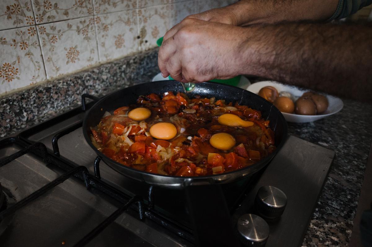 "Poco prima di partire hanno ucciso mia sorella. La notte sono rimasto a vegliare il corpo perché a Gaza i cani randagi non hanno cibo e mangiano i cadaveri", racconta Mohammed, mentre in una padella prepara la shakshuka, un piatto tipico con cipolla, uova speziate e pomodoro. "Vorrei spegnere il cellulare, ma è l’unico modo per sapere se i miei familiari stanno bene", aggiunge guarnendo con un filo d’olio un’abbondante ciotola di hummus. "Qui siamo al sicuro, ma mi sento in colpa. Dovrei essere a Gaza, accanto a mia madre che è sofferente e continua a fuggire da una parte all’altra della Striscia. Il 95 per cento degli ospedali è stato distrutto, le persone sono sfinite, non ce la fanno più".