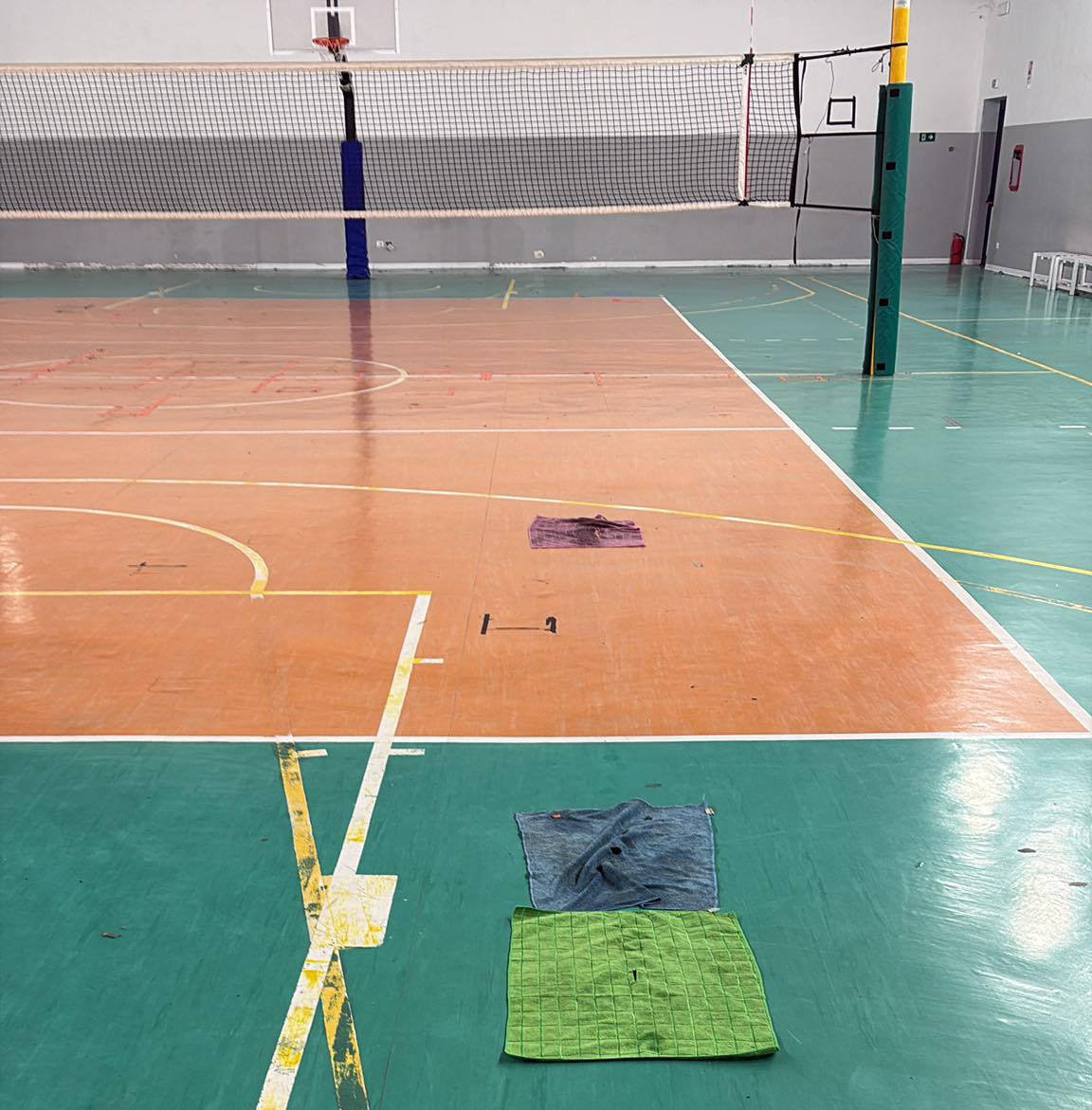“Di recente i nostri ragazzi si sono allenati usando soltanto metà campo per via della pioggia – spiega Domenico Serrao, responsabile della Pallacanestro Jirafa –. Questo è l’unico campo dove si può praticare: la Federazione ci ha consentito di usarlo in deroga anche se non è regolamentare”. Così, sulla superficie – non proprio ben messa – i giovani cestisti e gli allenatori hanno piazzato secchi, stracci e magliette per assorbire l’acqua. Stessa condizione vissuta dalla Phoenix Volley, come dimostrano le foto pubblicate su Facebook il 19 novembre, durante una giornata di pioggia, e accompagnate da una didascalia: “Siamo pieni di nastro adesivo e pezze a terra… sospendere le attività in palestra perché piove è troppo frustrante”. La rete a dividere le metà campo era stata montata, ma l’allenamento, in quelle condizioni, era rischioso. “In questo periodo è all’ordine del giorno che le attività saltino”, spiegano in forma anonima dalla società pallavolistica. E infatti, ad esempio, martedì 2 dicembre la Phoenix Volley ha dovuto spostare due partite – una della squadra under 14 e l’altra dell’under 16 – da Caivano in una palestra della vicina Frattamaggiore.
