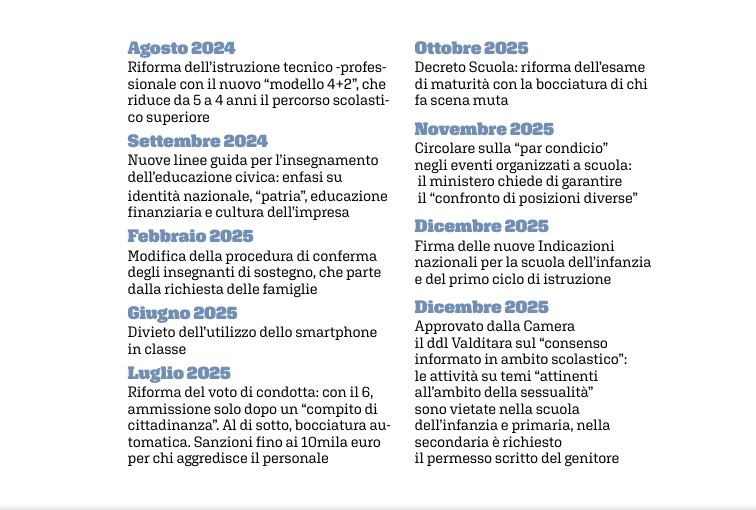Il tempismo è eloquente: mentre il parlamento discuteva la manovra che, nella proposta del governo (mentre scriviamo si attende ancora il voto definitivo, ndr), prevede tagli all’istruzione per 620 milioni nei prossimi tre anni, il ministro Giuseppe Valditara esultava per la firma delle nuove Indicazioni nazionali che da settembre 2026 dovrebbero orientare l’insegnamento in tutte le scuole dell’infanzia, primarie e secondarie di primo grado. "Si volta pagina – ha dichiarato lo scorso 9 dicembre –. Dal prossimo anno scolastico vi sarà il ritorno della centralità della storia occidentale, la valorizzazione della nostra identità, la riscoperta dei classici che hanno contraddistinto la nostra civiltà. Ripristiniamo inoltre il valore della regola, a partire da quella grammaticale, e del latino".